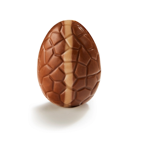 Voor puristen is er het massief melkchocolade eitje. Geen vulling, geen afleiding – alleen de volle, romige smaak van premium Belgische melkchocolade. Dit paaseitje toont de kwaliteit van de chocolade in zijn zuiverste vorm en is perfect voor wie van eenvoud houdt.